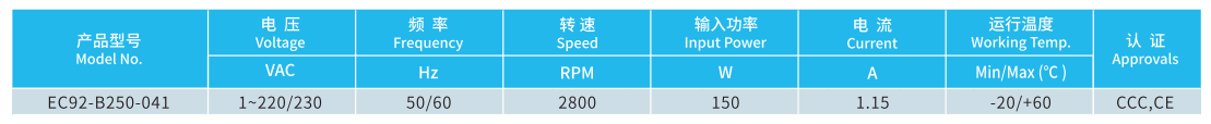產(chǎn)品型號 EC92-B250-041