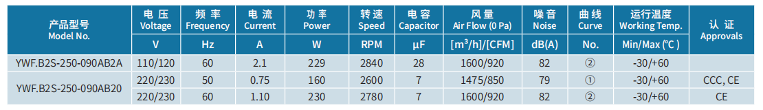 產(chǎn)品型號 YWF.B2S-250-090AB20