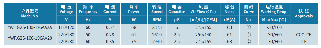 產(chǎn)品型號 YWF.G2S-100-196AA2A