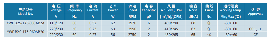產(chǎn)品型號 YWF.B2S-175-060AB2A