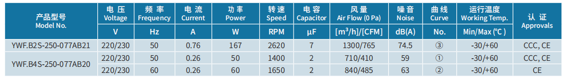 產(chǎn)品型號(hào) YWF.B2S-250-077AB21